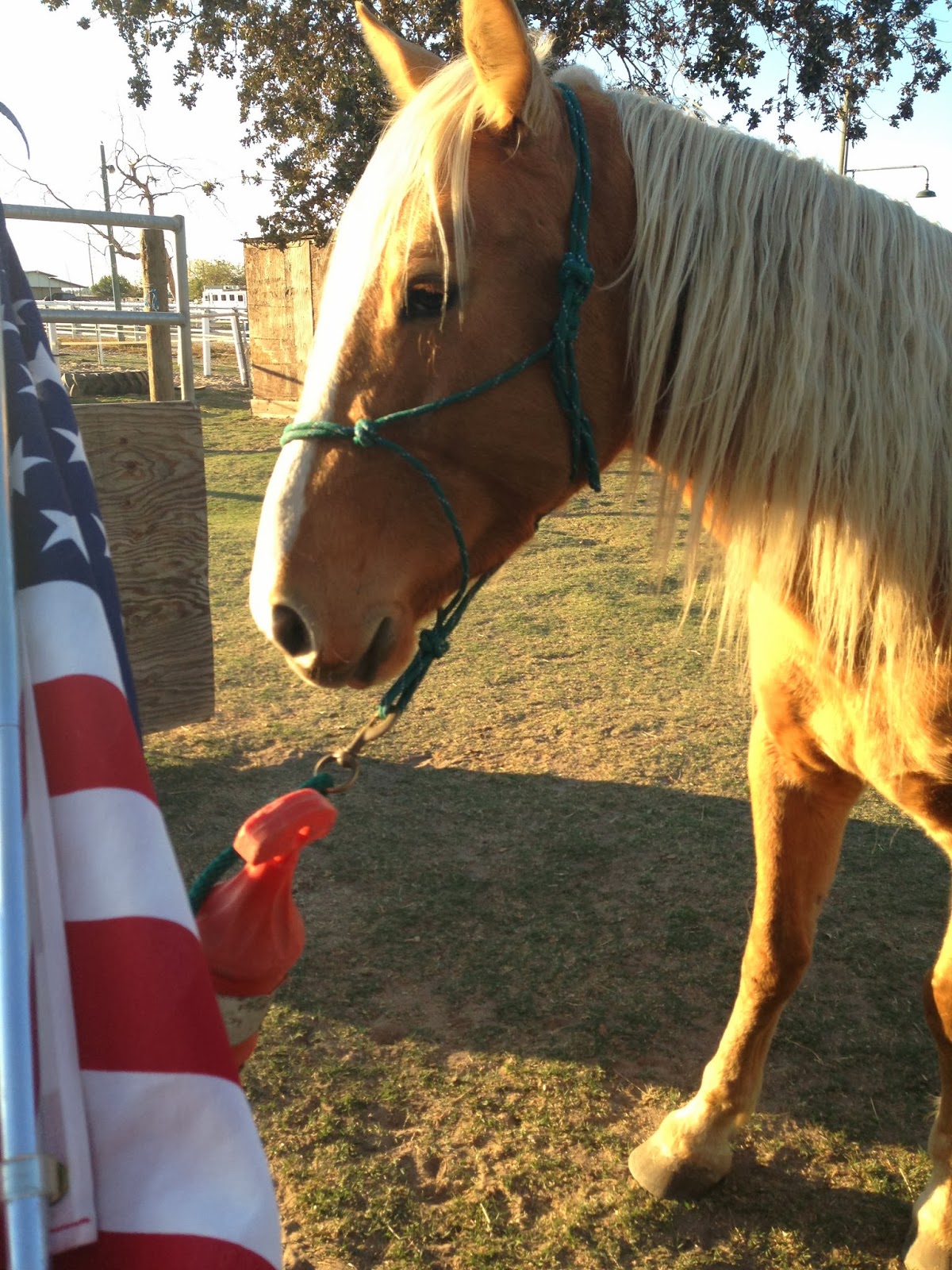 The goals for Amigo and Opal for the parade are very similar. 1 - Have a fun, positive experience for the horses, which may mean we walk. 2 - If horses are calm, we ride. 3 - If Amigo and Greg are calm and confident, they will carry the flag. Our priority is making sure the horses have a positive and safe experience above all.